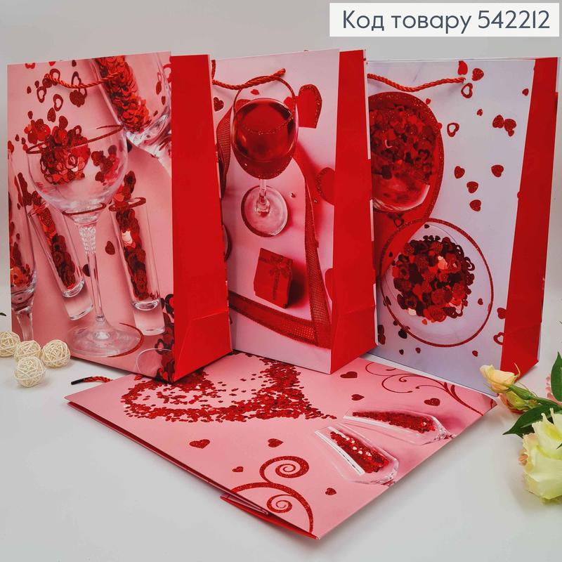 Пакет бумажный, "бокали полные сердечек" с блеском, в ассорт. 32*26*10см