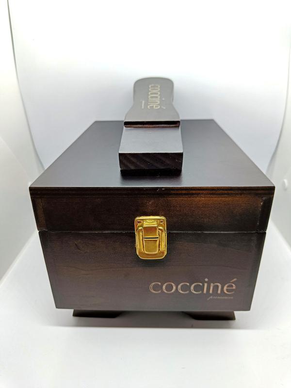 Дерев'яний футляр для косметики. Зберігайте косметику Coccine у цьому боксі та насолоджуйтесь зручністю та порядком. Натуральний масив сосни, морилка та лак, сталева фурнітура. Під час чищення взуття можна скористатися зручною підставкою на кришці боксу. Коробка ідеально підходить для подарунка, її можна наповнити набором для догляду за взуттям. Тримайте коробку в передпокої, перед відходом поставте ногу на підставку, яка одночасно є ручкою для підйому коробки та підставкою для ніг, в такому положенні можна легко почистити взуття.