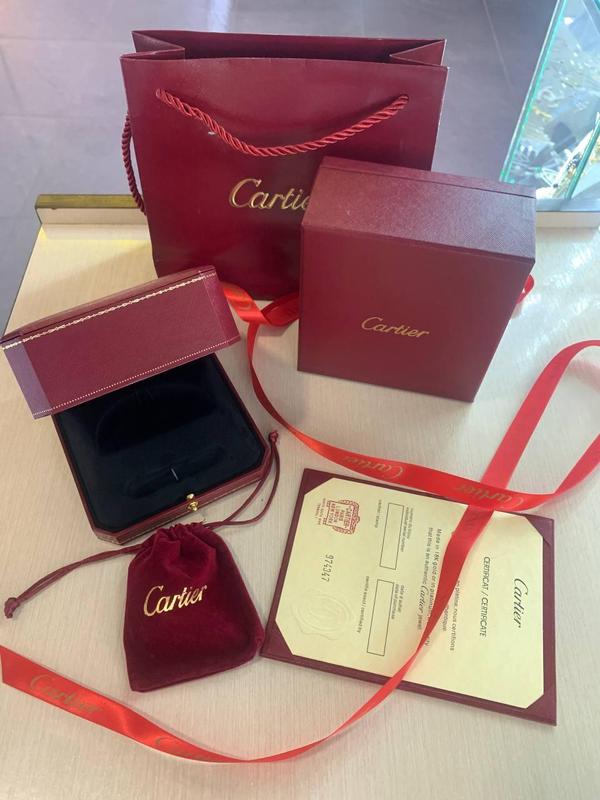 Упаковка картье - коробочка с бархатом, внешняя коробочка, мешочек, сертификат, ленточка.