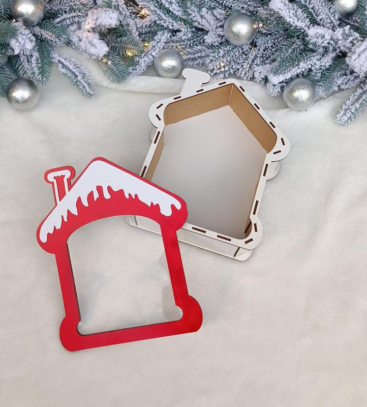 Новорічна коробка "хатка" з прозорим віконцем, 27 см