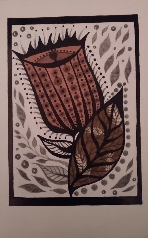 Открытка с цветком, ручная работа! Размер 13 см на 20,5 см. Плотный лист, в рисунке использованы: разная бумага для декора, черный карандаш, черный маркер. В одном экземпляре, а значит штучный и эксклюзивный товар! Отличный вариант подарка!