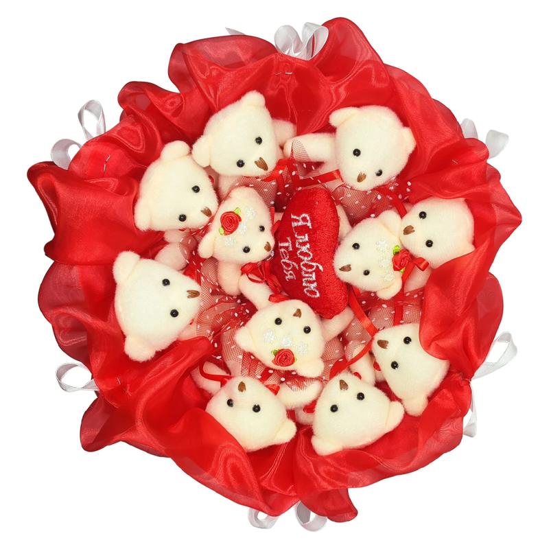 Букет из игрушек мишки 11 с сердечком в красно-белом 5172it