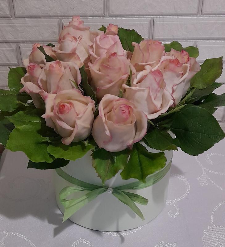 Цветы,которые не вянут!Шикарные 15 роз с полной детализацией , в коробке ,полностью ручной работы,не забываемый подарок к любому празднику вашим друзьям ,близким,так и для домашнего интерьера.Цветы из холодного фарфора,ни чуть не отличаются от живых,не теряют цвет со временем,долго будет радовать вас своей красотою.Пересылаю по всей Украине,после оплаты, Новой почтой .Качество гарантирую!Так же принимаю заказы на все виды цветов,композиций,сроки изготовления,цены зависит от сложности цветов,количества и т.д.Все интерес.инфу ,по запросу.