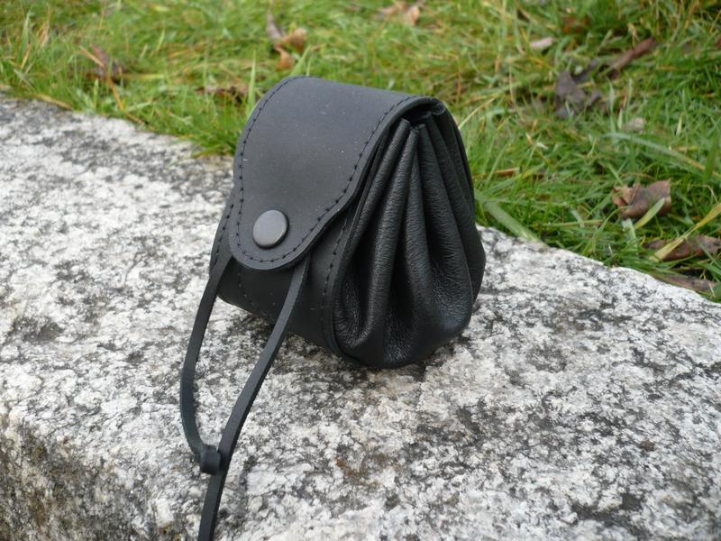 Мішечок для рун, обережних каменів, кісток, ігрових кубиків тощо. Виготовлений зі шкіри ВРХ "crazy horse" та шкіри ВРХ з напівматовим фактурним покриттям на лицьовій поверхні, колір чорний. Мішечок прошитий вощеною ниткою galaces 0,35 мм. Клапан фіксується кнопкою hato hasi ( Японія ). Ручна робота. Цінність: 1000 грн.
