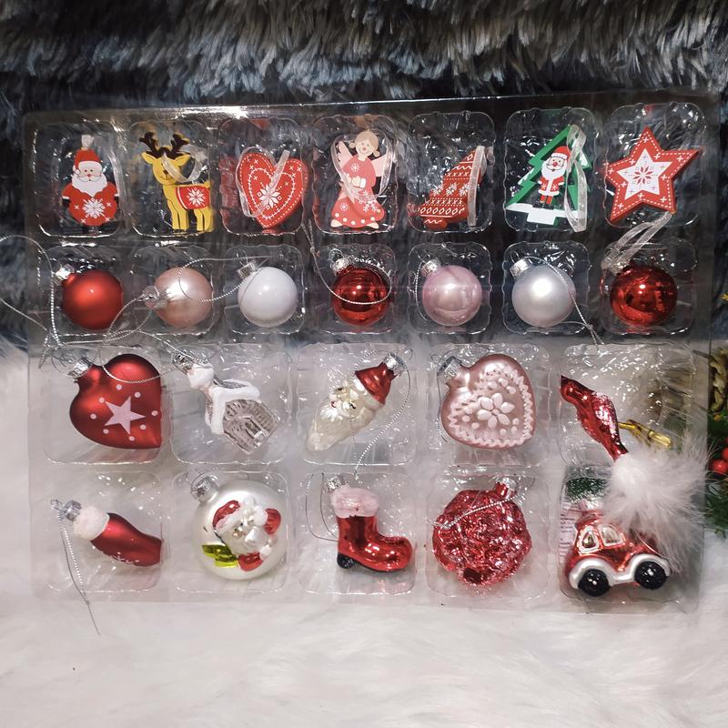 Адвент календарь новогодний с подарками шары украшения на елку стеклянные деревянные игруш...