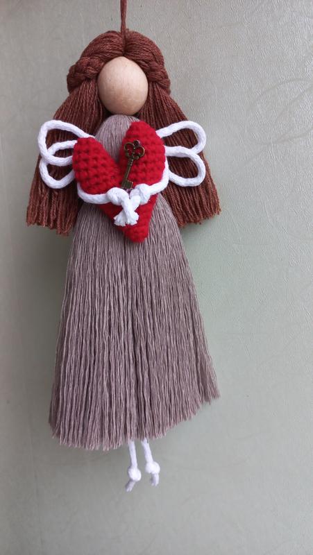 янгол подарунок на день Валентина з серденьком ручна робота, макраме.