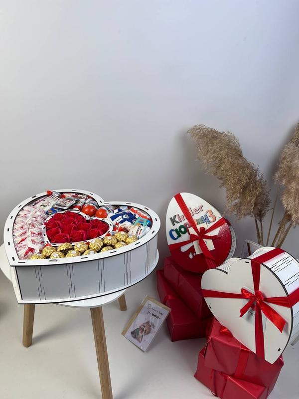 Серце в серці L Розмір : 42/38/10,5 у бокс входить : 🍫деревʼяна коробка серце в серці 🍫мильні троянди 🍫шкарпеткa 🍫kinder cards 🍫kinder country 🍫Nutella mini 🍫льодяник love is.. 🍫Ferraro-Rocher 13x 🍫Raffaello 14x 🍫kinder delice 4x 🍫kinder choko bons 7x 🍫kinder chocolate 2x 🍫kinder сюрприз 2x 🍫Тік Так love is… 🍫love is… 5x 🍫Harry Potter Ціна: 1410 грн При замовленні від 2х одиниць, доставка безкоштовна:) Для замовлення пишіть в особисті/ телефонуйте