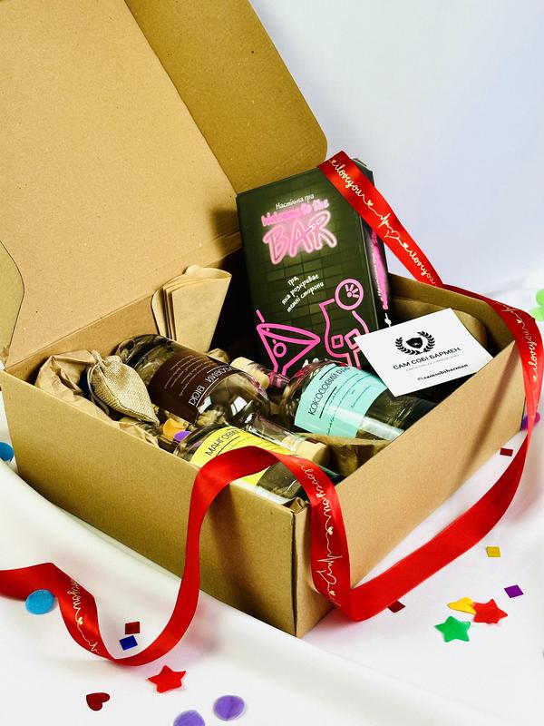 В наявності пляшечки по 0,2 та по 0,5 (смаки Ви обираєте самостійно за бажанням), листівка -інструкція (як приготувати настоянки, покрокова), фільтри для очищення від фруктів, декстроза (підсолодшувач, смʼягчає різкість алкоголю). Цей подарунок буде незабутнім! Набор також може бути і з більшою кількістю пляшечок за Вашим бажанням!