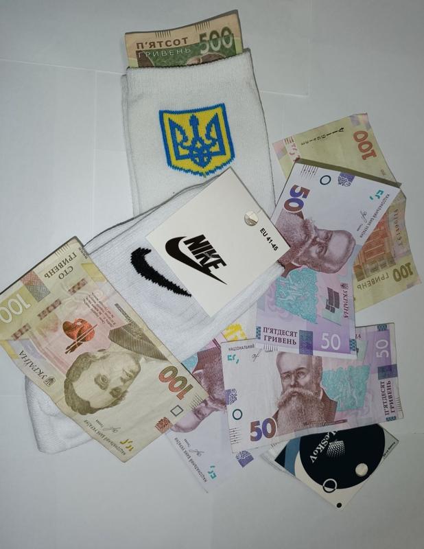 Денежные носки мужские 41-45 размера. Цена за пару 70 грн. В каждой паре обязательно есть деньги. В носках может быть от 20 до 500 грн. При заказе указывайте, какие именно носки вы желаете заказать (в наличии есть те, что изображены на фото в объявлении). В случае, если вы не укажете, какие носки желаете заказать, то мы отправим носки по своему вкусу из тех, что есть в наличии. Также, при заказе от трех пар есть шанс получить в подарок дополнительную пару носков. Стоит отметить, что в дополнительной паре денег не будет, так как дополнительная пара является просто подарком от нас.