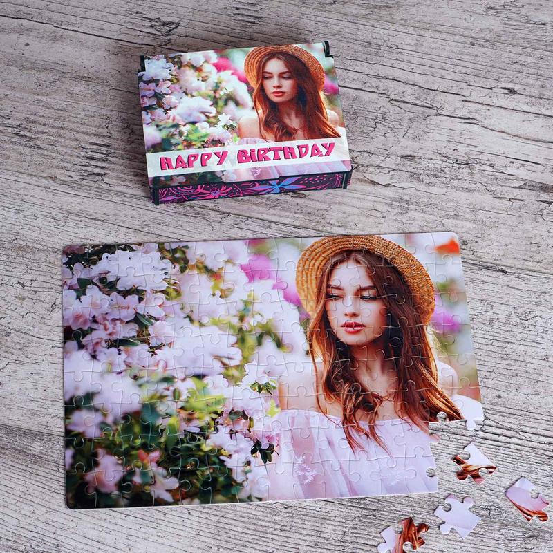 Чудовий індивідуальний подарунок на 8 березня, день народження чи будь-яке інше свято. Пазли по фашому фото в яскравій дерев'яній коробочці з принтом. Якісний друк, розмір картонного пазла А4 на 120 деталей. Виготовлення 1-2 дні. Можливе додавання напису з вітанням на пазл чи коробочку. Пазл без коробочки - 399грн.
