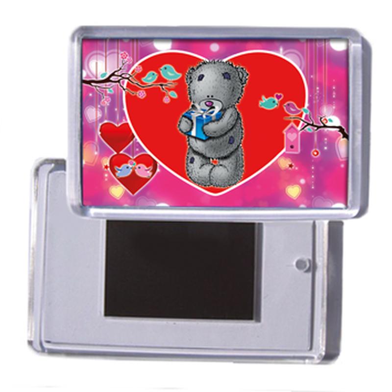 Акриловий сувенірний магніт на холодильник на день закоханих "ведмедик з подарунком"
