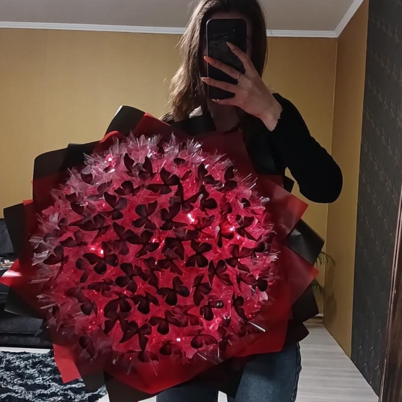 Букети з метеликів та гірляндою дуже гарний подарунок на будь яке свято бабусі, мамі, сестрі, дівчині, вчительці, колезі та будь кому. В таких букетів є свої плюси: •довговічний; •не викликає алергію; •замінить нічник; •на батарейках. Роблю на замовлення протягом 1-3 днів. Ціна змінюється взалежності від кількості метеликів. Метеликів, гірлянду та пакування ми обговоримо. 25🦋-400 грн 35🦋-500 грн 45🦋-600 грн 55🦋-700 грн 65🦋-800 грн 75🦋-900 грн 85🦋-1000 грн 95🦋-1100 грн 101🦋-1200 грн