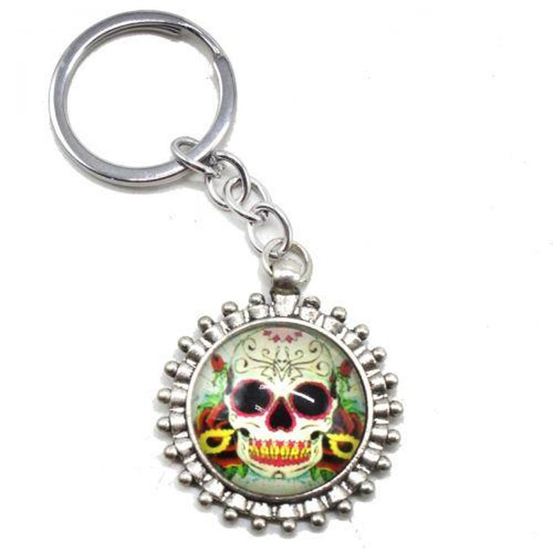 Стильний металевий брелок із зображенням черепа. До ланцюжка прикріплене металеве кільце. Скляне покриття робить малюнок об'ємнішим. Ідеально підійде для зв'язку ключів або ж просто як прикраса. Довжина з кріпленням: 10 см.