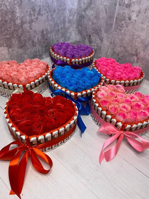 Патріотичні тортики з класнючими мильними трояндами для наших милих жінок Композиції виконані в різних розмірах, щоб ви могли вибрати потрібний для вас. Може бути виконано і з меншими трояндами. В даному випадку як в оголошенні серце маленького розміру або 15-17 троянд великих або 21-23 маленьких. - Тортик 1ярус великий: 33-35 троянд 44-46 порцій кіндер 1090грн - Тортик 1ярус середній: 23-25 троянд 37-39 порцій кіндер 890грн - Тортик 1ярус маленький: 15-17 троянд 30-32 порцій кіндер 770грн - При потребі можна зробити ще міні Композицію: 440грн - Тортик 2яруси більший: 23-25 троянд 82-84 порцій кіндер 1190грн - Тортик 2яруси менший: 15-17 троянд 68-70 порцій кіндер 990грн - Тортик 3яруси: 15-17 троянд 113-116 порцій кіндер 1380грн - Також можливий тортик на 4яруси: 1490грн Такі тортики готуємо по факту замовлення, тому за свіжість та зовнішній вигляд можете не хвилюватись. Колір мильних троянд і бантиків можна змінювати на інший. Якщо у вас залишились запитання пишіть нам в зручний меседжер: +38********** ******** +38********** ***** Сторінка в інстаграмі @***************
