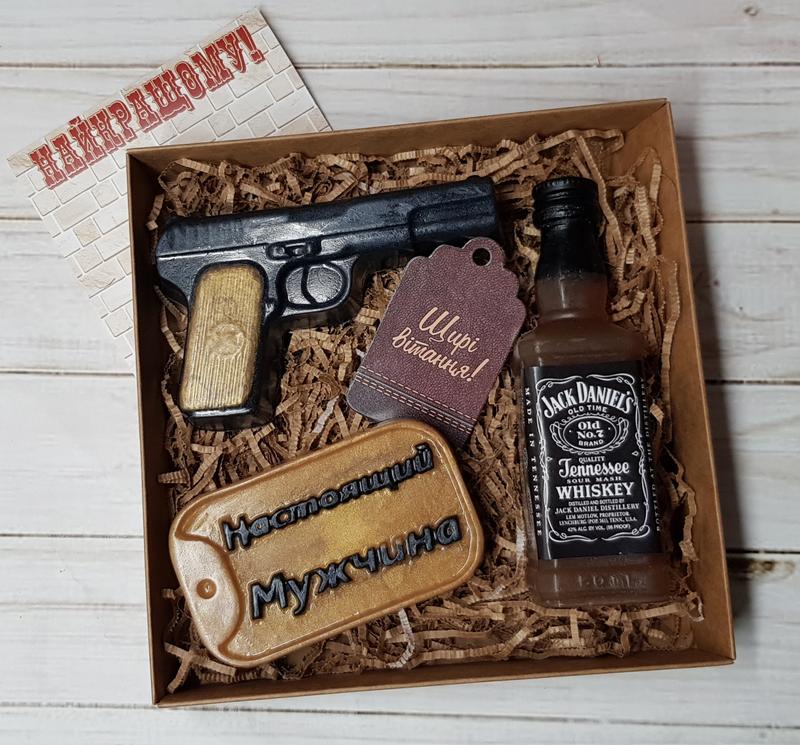 Мыло ручной работы мужской подарочный набор "часы+партмоне+виски"