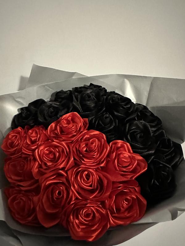 букетик сделан из лентов можно выбирать любой цвет стоимость за одну розу - 25 грн