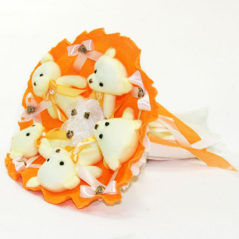 Букет з іграшок ведмедики помаранчевий 5345it з 5ю іграшками