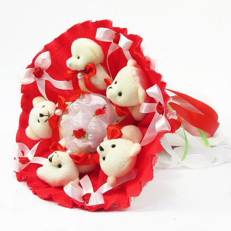 Букет з м'яких іграшок 5 ведмедиків 5289it червоний