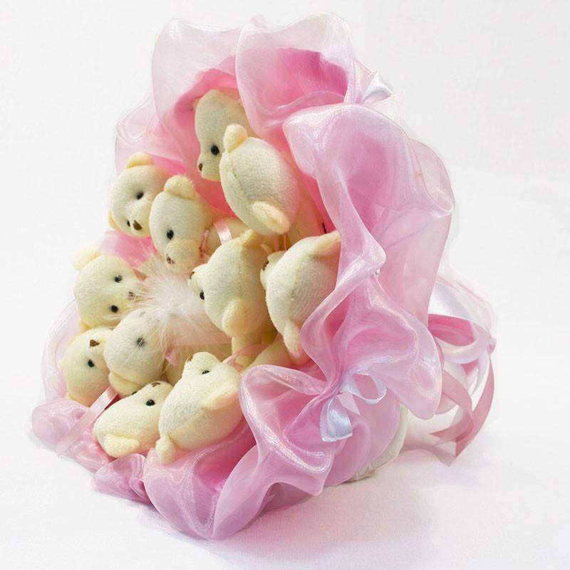 Букет з іграшок ведмедики ніжно-рожевий 5347it з 11ю іграшками