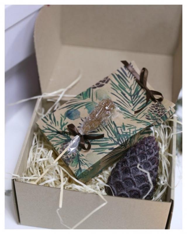 Подарочный набор Хвойный Какой главный атрибут Нового года? Это ель, подарки и теплая компания самых близких людей! Предлагаем Вам вкусный новогодний набор, который станет прекрасным подарком для самых родных, друзей и коллег. Состав: - Свеча шишка - Чай аромо в пакетике с принтом – 50 г - Сахарный кристал на палочке – тростниковый - Подарочная упаковка.