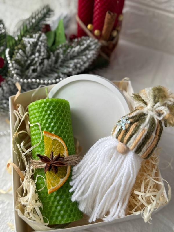 Новогодний бокс ( набор свеча, гном, подсвечник, новогодний набор)