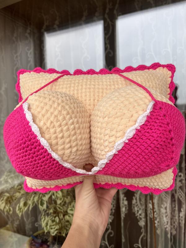 Подушка з грудьми,вʼязана подушка, подарунок чоловіку, прикол