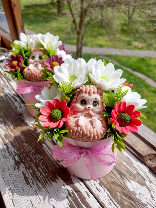 Букет ароматних квітів з їжачком