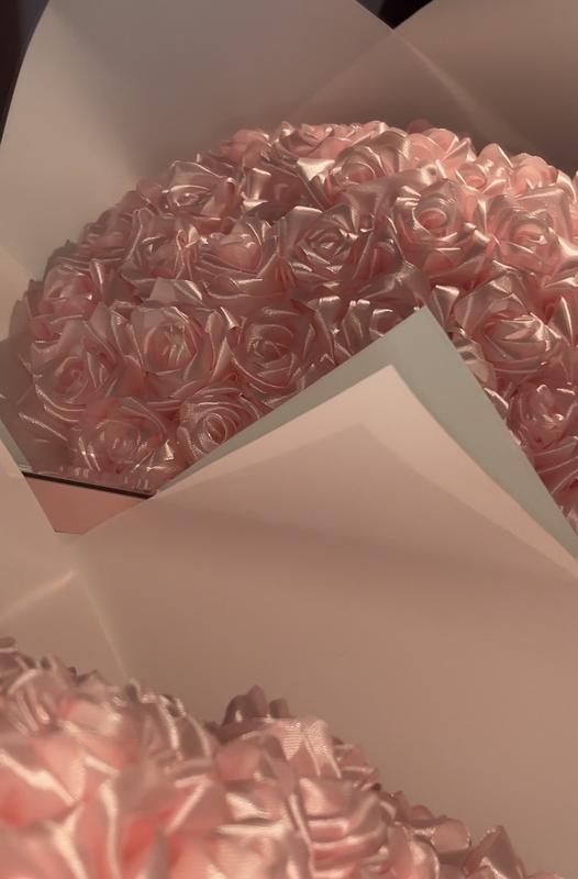 букети з атласних стрічок на замовлення (троянди, жоржини) букет 51 троянда (рожеві) - 1300 грн червоні 39шт - 1000 сині 31 шт - 850 пишіть, за ціну домовимось