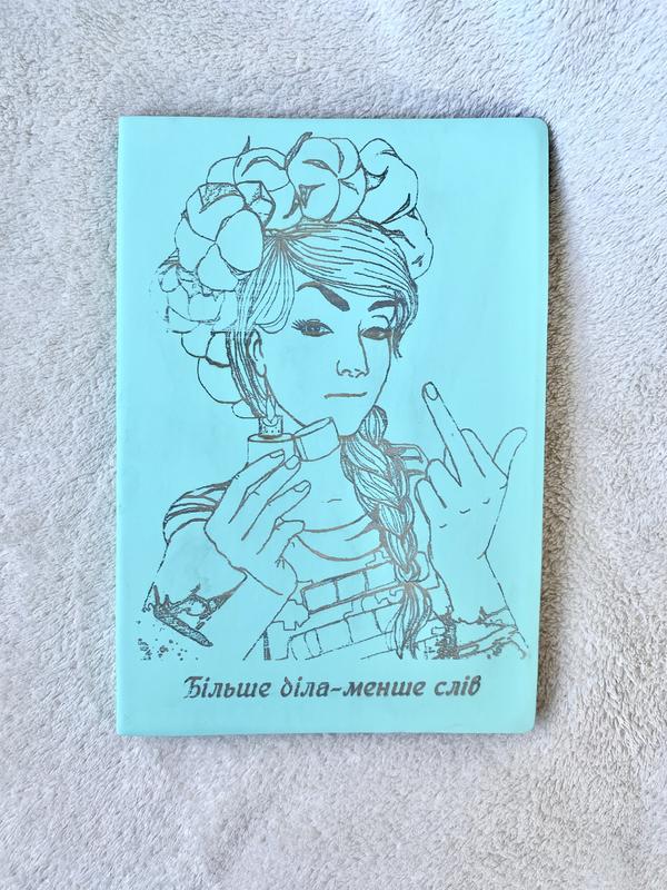 Блокнот для запальної дівчини))) Формат А5, 80 листів, мʼяка обкладинка- штучна шкіра блакитного кольору. Малюнок на обкладинці нанесено гравіюванням( не стирається). Задавайте питанння до оформлення купівлі. Всім тихого мирного дня і вдалих покупок!