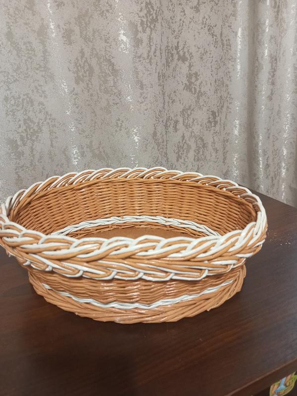 Овальний кошик з еколози ручної роботи — стильний та екологічний елемент декору для вашого дому. Виконаний у ніжному бежевому кольорі з білими проплетеними вставками, він виглядає дуже охайно та гармонійно пасує до будь-якого інтер’єру. Кошик легкий, міцний і універсальний у використанні — підходить для зберігання дрібниць, косметики, серветок, солодощів чи як декоративна прикраса. 📏 Розмір: 25 × 19 × 9 см 🌿 Матеріал: еколоза (паперова лоза) 💫 Особливості: ручна робота, натуральний вигляд, приємна текстура.