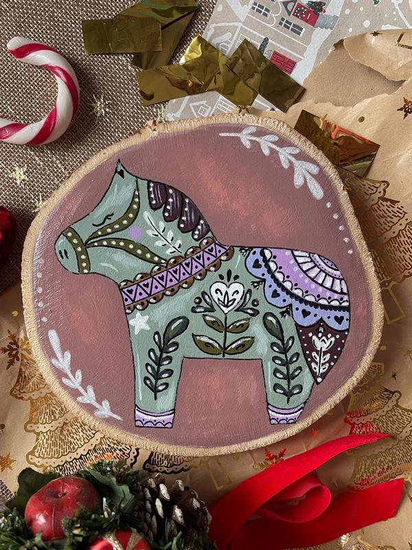 Символ 2026 року Коник - традиційний символ сили, руху вперед і життєвої енергії. Великий спил з натурального дерева, розписаний вручну. Розмір 18 см. На зворотній стороні є петля, щоб повісити, або ж можна просто поставити на поличку. Теплий акцент у домі або щирий святковий подарунок