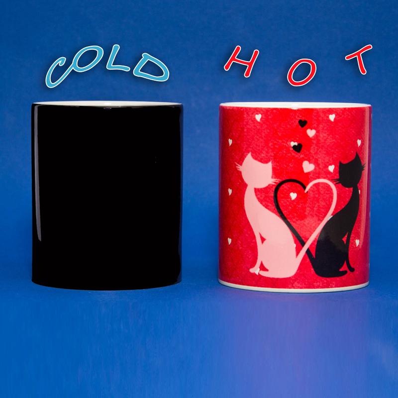 Оригинальная чашка хамелеон (Влюбленные кошечки) Влюбленные кошечки - это мур-мяу чашка для влюбленных! В обычном состоянии чашка черного цвета, но когда Вы наливаете в нее Ваш любимый горячий напиток, то на ней появляются пара влюбленных кошечек, которые скрепили свои хвостики в сердечко. Ваша вторая половинка большой кошатник/ца? То такая чашка именно для него/нее! Она станет отличным подарком ко Дню Влюбленных, мы Вам гарантируем. Особенности чашки Идеальная форма, которая отлично держит температуру напитка. Изображение появляется только под воздействием кипятка. Внутри чашка остается абсолютно белоснежной без изменения цвета. Качественная керамика не дает трещин и выдерживает незначительные падения. Как купить чашку хамелеон в интернет-магазине? Заказ на сайте или по телефону Звонок менеджера в течение 15 минут Предоплата любым удобным способом Отправка товара в день заказа