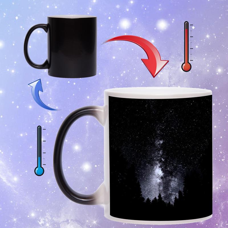 Чашка хамелеон - оригинальный подарок для Ваших друзей, коллег и близких людей. При наполнении кипятком, на чашке хамелеон проявляется завораживающее изображение ночного неба. Данная чашка будет стильным подарком к любому празднику. Сделайте обычное чаепитие ярким и интересным с чашкой хамелеон!