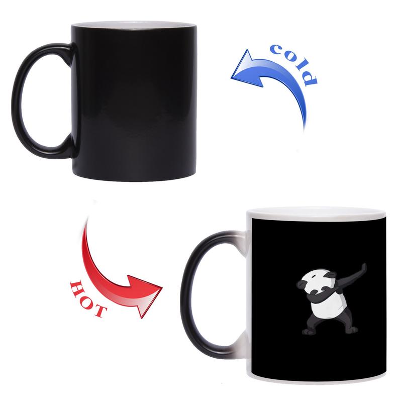 Чашка хамелеон - оригинальный подарок для Ваших друзей, коллег и близких людей. При наполнении кипятком, на чашке хамелеон проявляется рисунок панды, показывающей модный жест дэб. Данная чашка будет стильным подарком к любому празднику. Сделайте обычное чаепитие ярким и интересным с чашкой хамелеон!