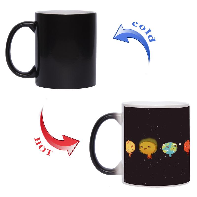 Чашка хамелеон - оригінальний подарунок для Ваших друзів, колег і близьких людей. При наповненні окропом, на чашці хамелеон проявляється графічний малюнок милих планет сонячної системи у вигляді маленьких чоловічків. Ця чашка буде стильним подарунком до будь-якого свята. Зробіть звичайне чаювання яскравим і цікавим з чашкою хамелеон!