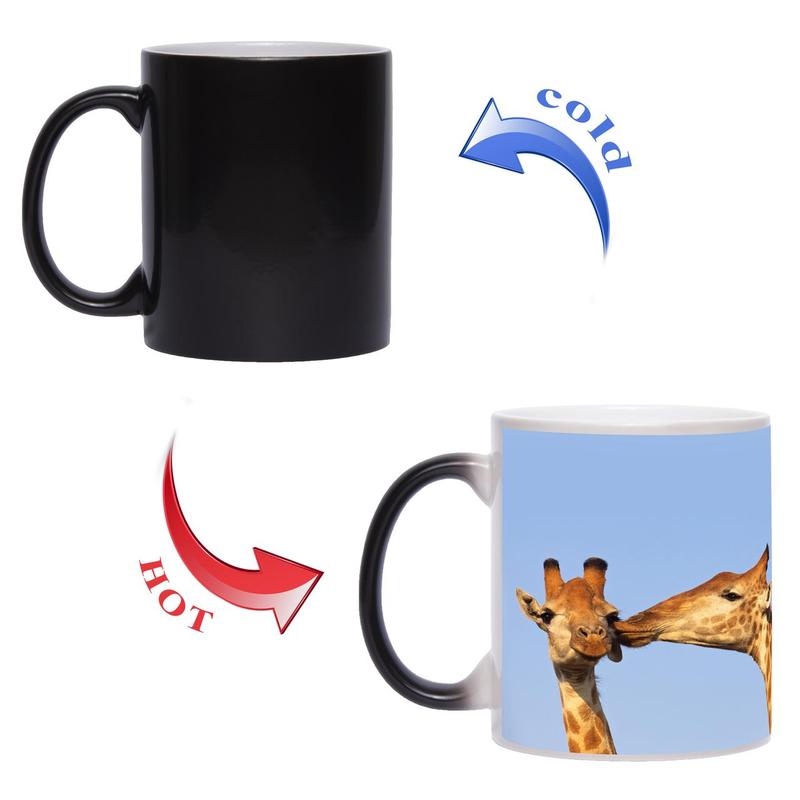 Чашка хамелеон - оригинальный подарок для Ваших друзей, коллег и близких людей. При наполнении кипятком, на чашке хамелеон проявляется изображение пары милых жирафов. Данная чашка будет прекрасным подарком для Вашего любимого человека. Сделайте обычное чаепитие ярким и интересным с чашкой хамелеон!