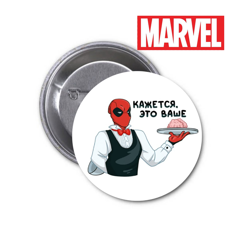 Значок Marvel Deadpool Марвел Дедпул Можна причепити на рюкзак, сумку тощо. Діаметр круглого значка 58мм Ціна за 1шт