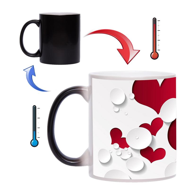 Чашка хамелеон - оригинальный подарок для Ваших друзей, коллег и близких людей. При наполнении кипятком, на чашке хамелеон проявляется красочное изображение сердечек. Данная чашка будет стильным подарком к любому празднику. Сделайте обычное чаепитие ярким и интересным с чашкой хамелеон!