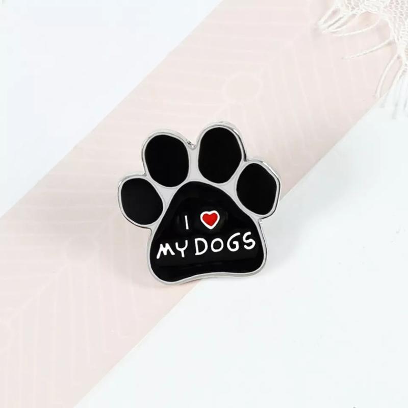 Значок / пин / металлический милая лапка черного цвета с надписью и сердечком