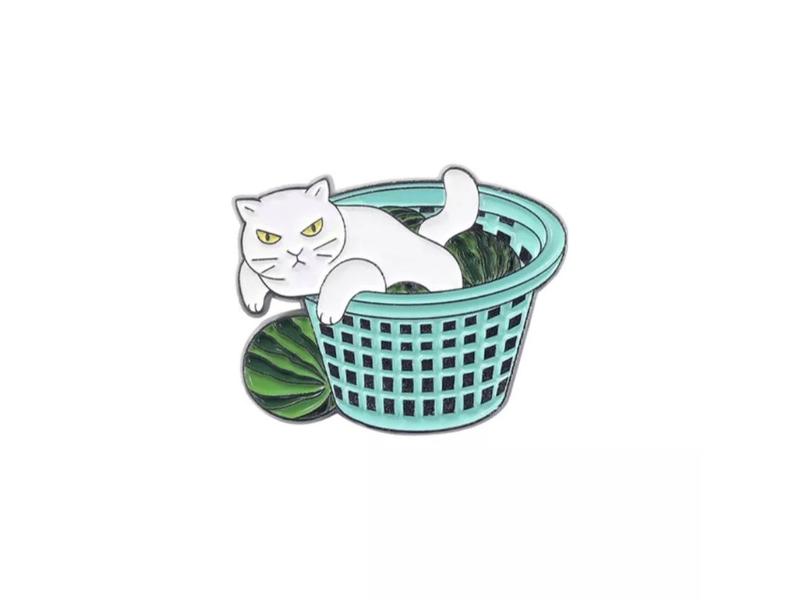 Значок/пін/міні металевий милий мультяшна кішка в кошику