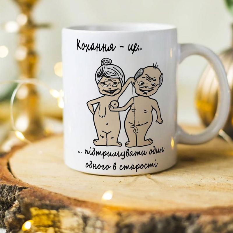 Оригінальна чашка подарунок для закоханих "кохання - це підтримувати один одного у старост...