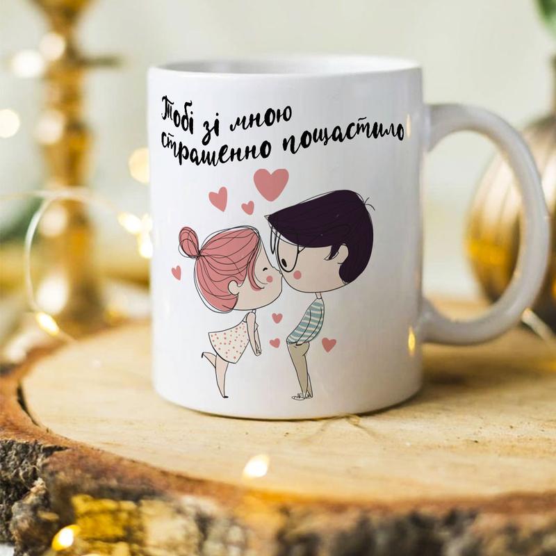 Чашка для закоханих на подарунок "тобі зі мною страшенно пощастило"