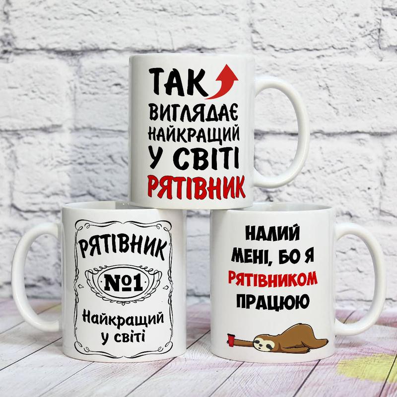 Оригінальна чашка для рятувальника на подарунок з написом "налий мені, я рятувальником пра...