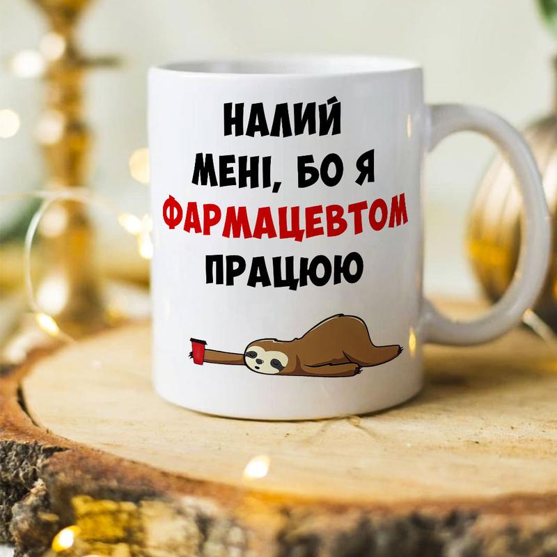 Оригінальна чашка з приколом для фармацевта на подарунок "налий мені, бо я фармацевтом пра...