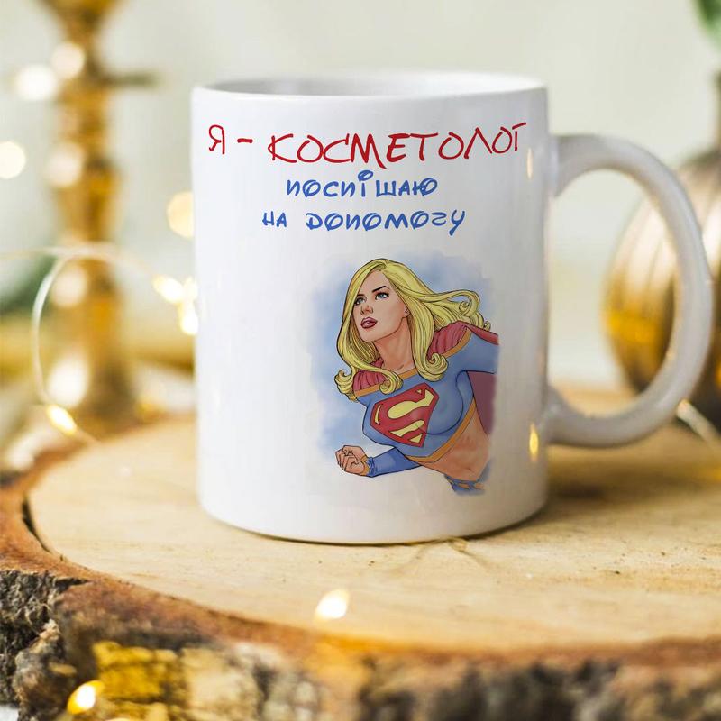 Оригинальная чашка на подарок для косметолога "спешу на помощь"
