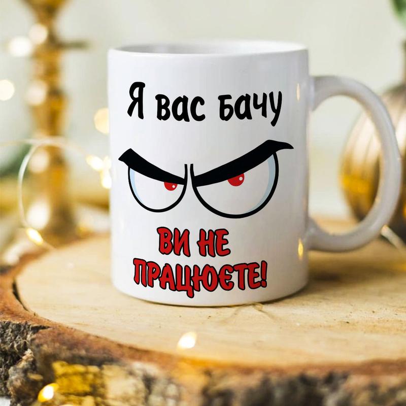 Оригінальна чашка на роботу в офіс для начальника "я вас бачу, ви не працюєте"