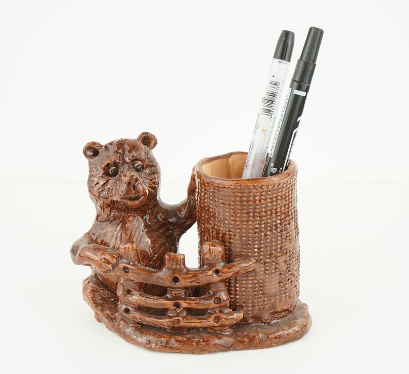 Авторська керамічна статуетка під олівці та ручки, з ведмедем, ручної роботи. Така статуетка стане чудовим подарунком дитині на День народження або просто так. 7x8см.
