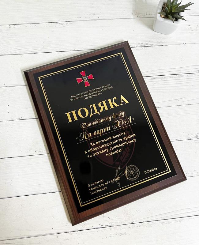 Металеві дипломи, грамоти та сертифікати використовуються для вручення співробітникам і партнерам, такі вироби виглядають дорого і престижно. Друк проводитися на металі методом повнокольорового друку сублімації. Колір металу на вибір: золото / срібло Дерев'яна підкладка: колір венге Кріплення передбачено. Розмір: (220х300мм При оформленні замовлення в коментарях вкажіть текстову інформацію, яка буде розміщена на металі. Або надішліть інформацію нам на пошту ********@******* або Вайбер *************. Перед друком ми надсилаємо на Вашу електронну адресу або Вайбер макет з Вашими даними згідно зразка і після Вашого затвердження, наносимо на виріб!