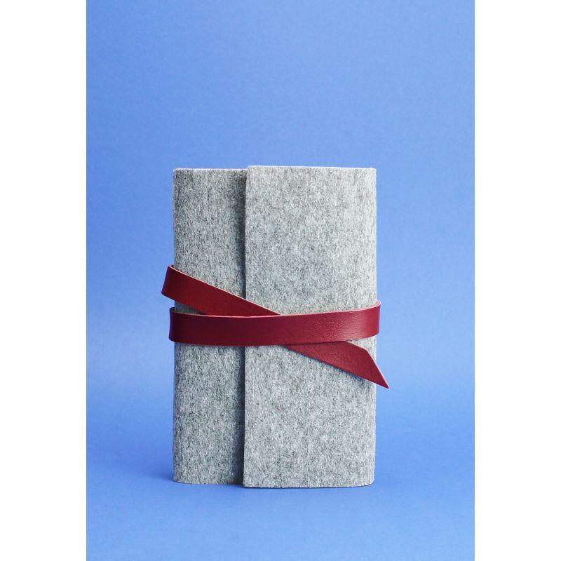 Фетровий жіночий блокнот (софт-бук) 1.0 фетр зі шкіряними бордовими вставками