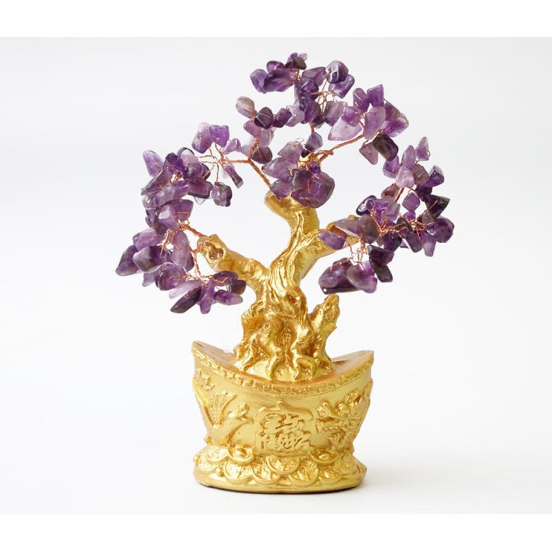 Дерево Счастини з камінням в чаше изобилия - Довжина: 6 см - Ширина 16 см - Висота 18 см Аметист — це фіолетовий кристал, який має кілька корисних властивостей і може бути використаний в особистому житті. Одна з основних користувацьких аметистів полягає в його здатності сприяти заспокоєнню й розслабленню. Він здатний знижувати рівень стресу та тривоги, допомагаючи заспокоїтися й зосередитися на моменті. Тому аметист може бути корисний людям, які мають проблеми зі сном або постійно відчувають напруженість. Також аметист відомий своєю здатністю покращувати інтуїцію й допомагати в розробленні певних життєвих навичок, як-от прийняття рішень і збільшення творчого потенціалу. Він може стимулювати розвиток пізнавальних здібностей і сприяти глибшому розуміння самого себе. Аметист також вважається символом сили та захисту. Він може допомогти знайти внутрішній світ і стимулювати розвиток психічних здібностей. Ще аметист розміщують у робочому просторі, це може поліпшити концентрацію, підвищити ефективність і стимулювати творчий процес. Всі ці властивості можуть бути використані в особистому житті, носінні прикрас з аметисту, розміщенні в основних місцях житла або просто утриманні біля себе як талісмани. Додавання аметисту у ваше особисте життя може забезпечити збалансованість, спокій і підтримку в розвитку ваших здібностей.